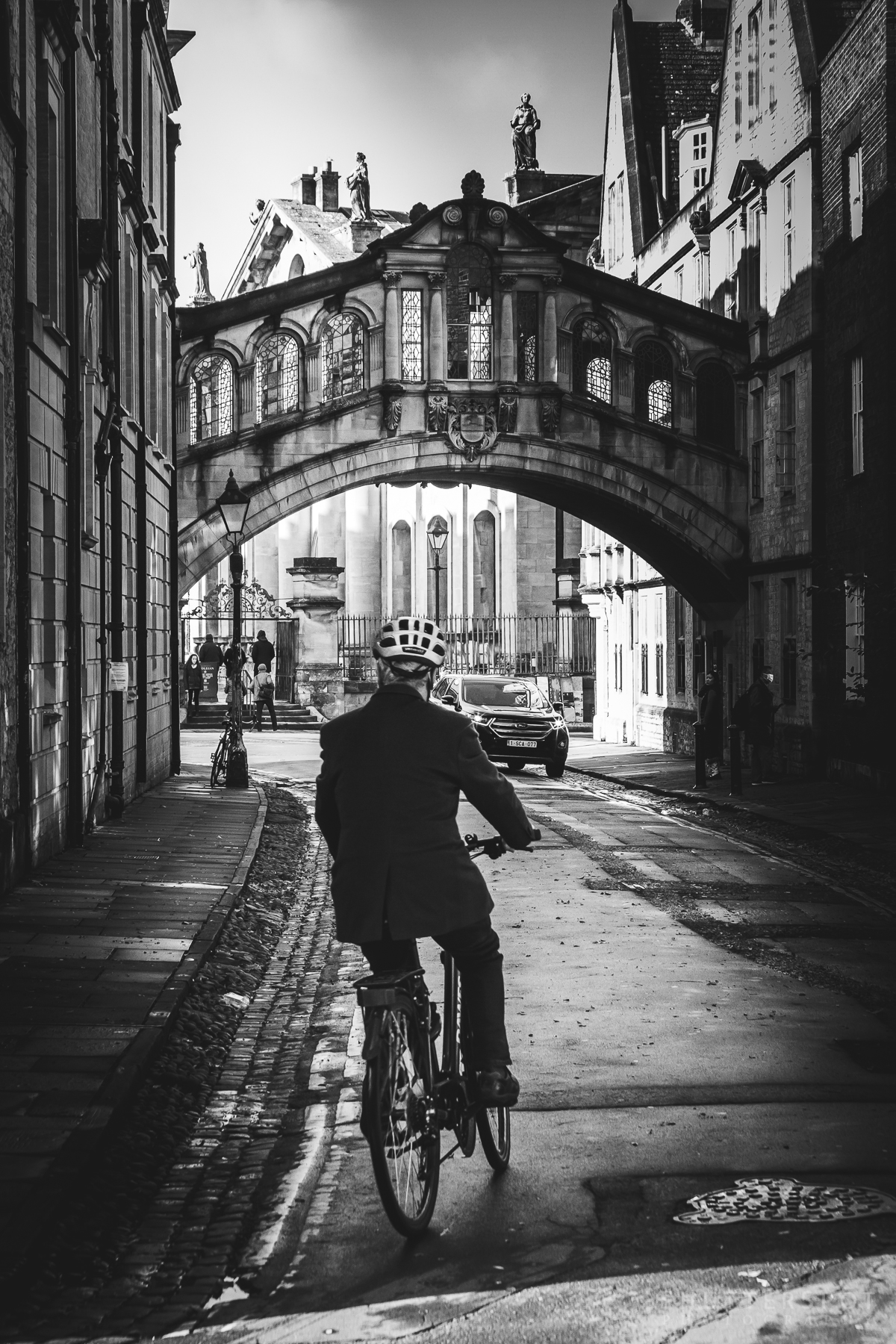Visited Oxford to see our son who is studying in the City. I was able to spend a bit of the day wandering the historic streets and managed to capture a quintessential Oxford cyclist under the Bridge of Sighs.