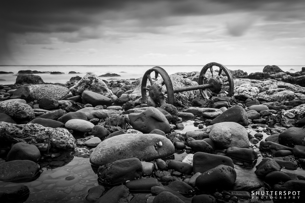 Keywords: black and white, carriage, chaldron, coast, coastal, harbour, long exposure, monochrome, north east, north sea, seaham, train, wheels