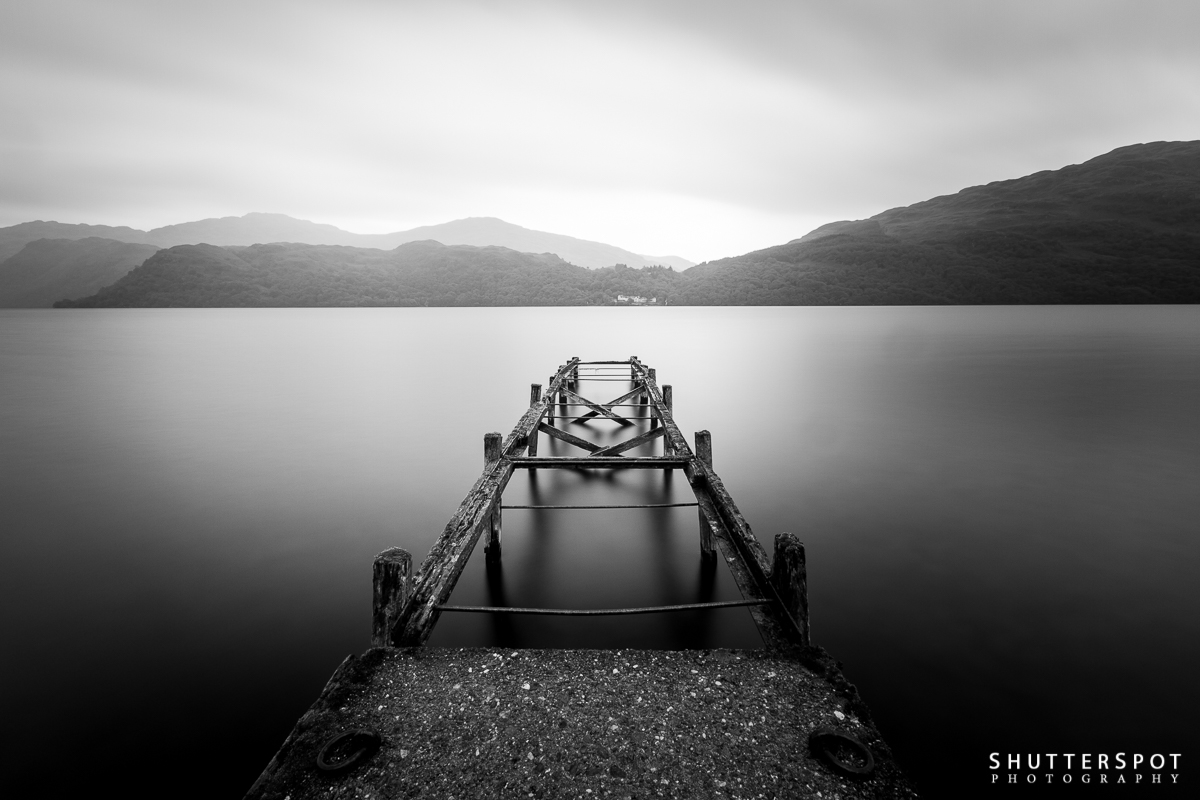 Keywords: black and white, fog, light, loch, loch lomond, lomond, long exposure, mist, monochrome, scotland, shadow