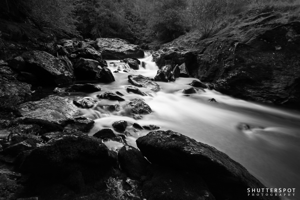 Keywords: black and white, falloch, falls of falloch, long exposure, monochrome, scotland, waterfall