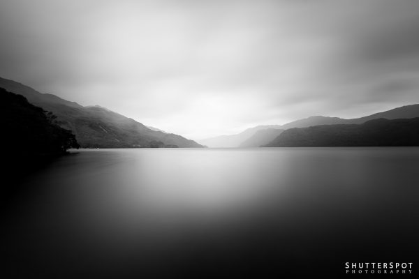 Keywords: black and white, fog, light, loch, loch lomond, lomond, long exposure, mist, monochrome, scotland, shadow
