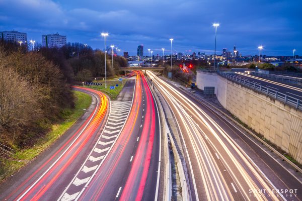 Keywords: kfconcept, leeds, light trails, long exposure, morning, road, sunrise, traffic, urban, yorkshire