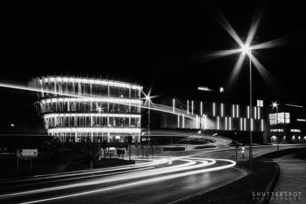 Keywords: architecture, black and white, bnw, huddersfield, light trails, long exposure, monochrome, oastler building, university of huddersfield, yorkshire