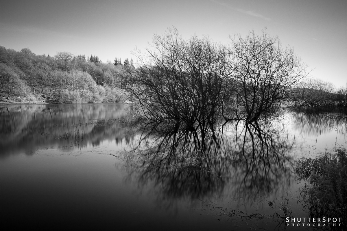 Keywords: black and white, long exposure, monochrome, reflection, reservoir, tree, water, yorkshire